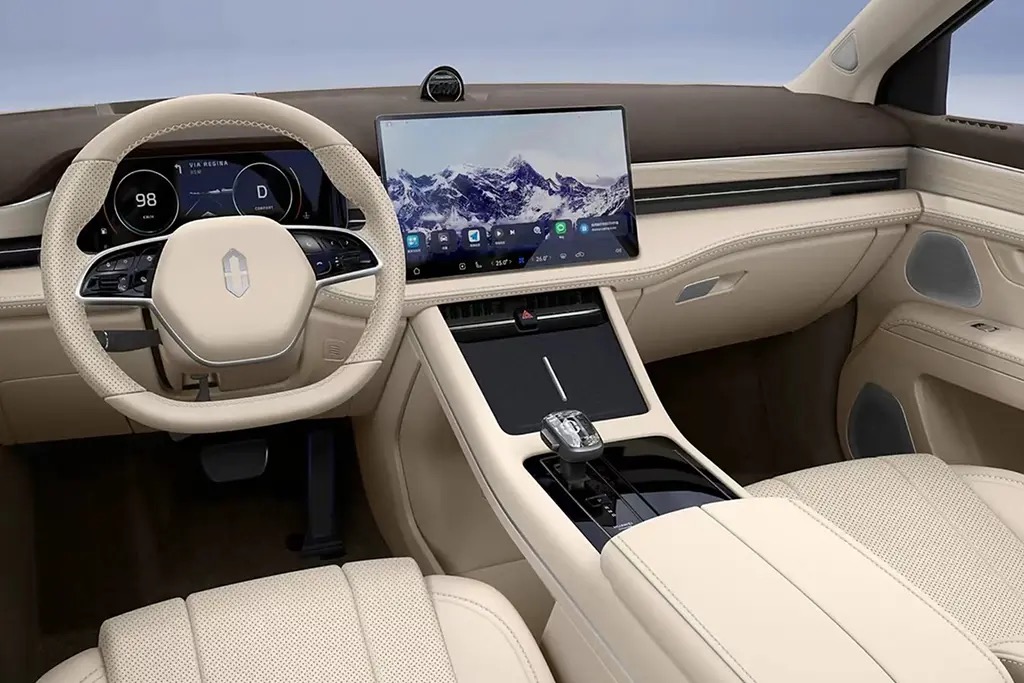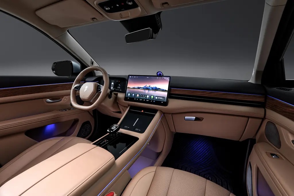 - A Huawei-powered HarmonyOS smart cockpit with a large touchscreen infotainment system