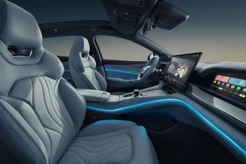 - A large central touchscreen integrated with intelligent infotainment and vehicle controls