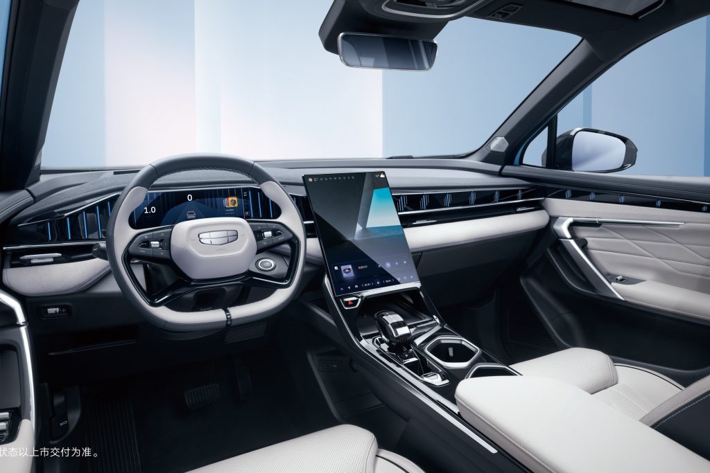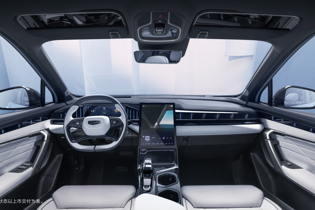 - A 13.2-inch vertical touchscreen infotainment system, powered by Geely’s Galaxy OS