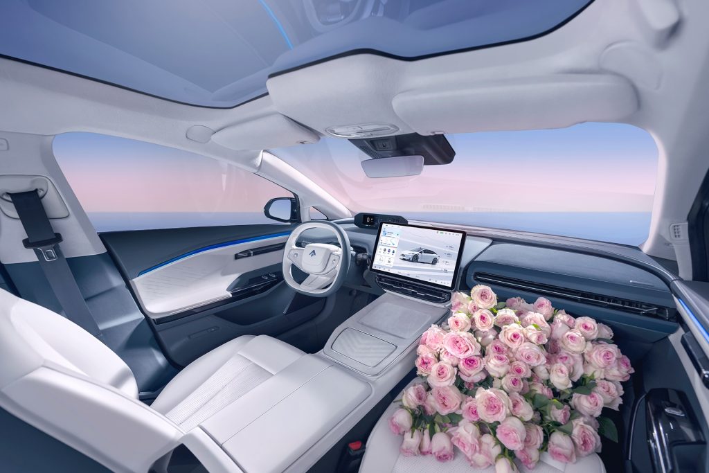 - A large floating infotainment touchscreen, powered by Aion’s ADiGO intelligent system
