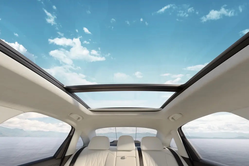 - A coupe-like sloping roofline, enhancing aerodynamics and sporty appeal