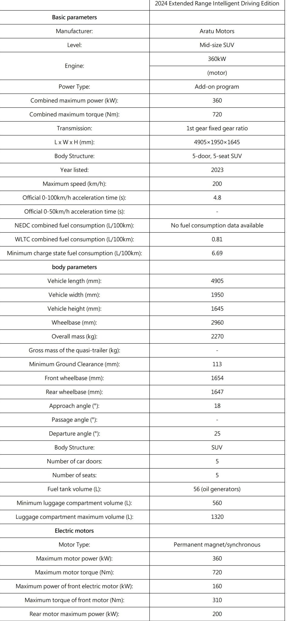 - Range-extended version with a 1.5L turbocharged engine, extending total range to over 1200 km